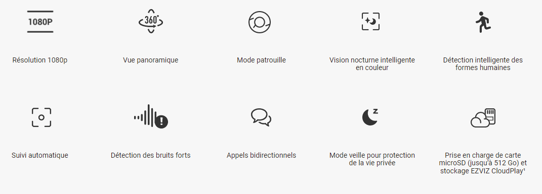 La caméra CP1 Pro de EZVIZ possède tous les atouts de sa petite soeur la C6N, son prix un peu plus élevé s’explique par son mode de patrouille autonome qui permet une rotation de la caméra pour éliminer les angles morts. Cette caméra per met aussi de détecter des personnes, vous recevrez ensuite une notification pour vous alerter en temps réel.