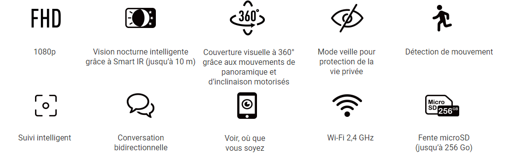 Le plus de la marque : le smart-tracking, la caméra détecte les mouvements et les personnes, la caméra suit alors les personnes en zoomant sur leurs visages.